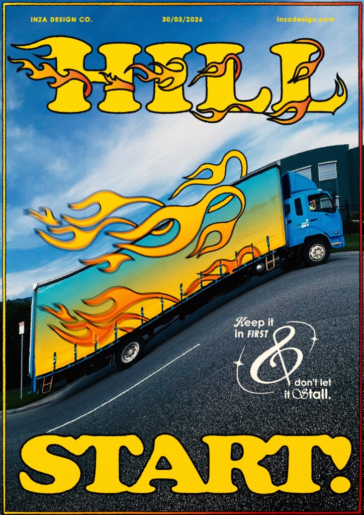 Warping the photo, added drama. It was a great starting point. It transformed the flat road into a hill and gave notions of a ‘hill start’.