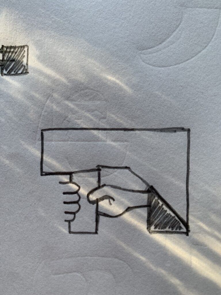 In this state, I try to draw the ordinary. A hand holding a sign. A minimalist version of it. What directions do the knuckles point? Should I draw the fingernails? Why am I even drawing this? But I do it anyway- hoping that this would look better once I fix it… in the bluelight. I am tired again.